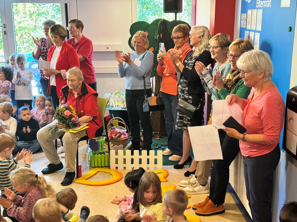 Ende September haben wir unsere Kolleginnen Gabi nach unglaublichen 51 Jahren in der AWO Kita Regenbogen verabschiedet – gemeinsam mit allen Kindern, Kolleg:innen, Küchenkräften, Hausmeistern und sogar einigen ehemaligen Mitarbeitenden. Im selben Jahr, als Nina Hagen sang: „Du hast den Farbfilm vergessen…“, begann Gabi ihre Reise bei uns. Zum Glück hat sie den Farbfilm nie vergessen – im Gegenteil: Sie hat über fünf Jahrzehnte lang Farbe, Freude und ganz viel Herz in unseren Kita-Alltag gebracht.