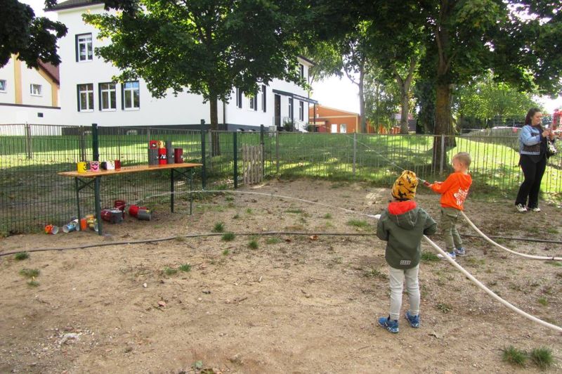 Ein aufregender Tag für alle kleinen Feuerwehrfans! Beim Feuerwehrfest in unserer AWO Kita Abenteuerland konnten die Kinder einen großen Feuerwehrwagen von innen erkunden und selbst aktiv werden: Mit echten Wasserschläuchen durften sie Dosen abwerfen und am großen Fußball Dart ihr Können zeigen. Für das leibliche Wohl war natürlich auch gesorgt – bei Janins und Connys Essecke gab es leckeren, selbstgebackenen Kuchen. Wir freuen uns über die große Beteiligung, die vielen Besucherinnen und Besucher sowie die fleißigen Kuchenbäckerinnen, Eltern und Kinder, die zu diesem schönen Fest beigetragen haben. Auch das Team hatte viel Spaß und einen wunderschönen Tag.