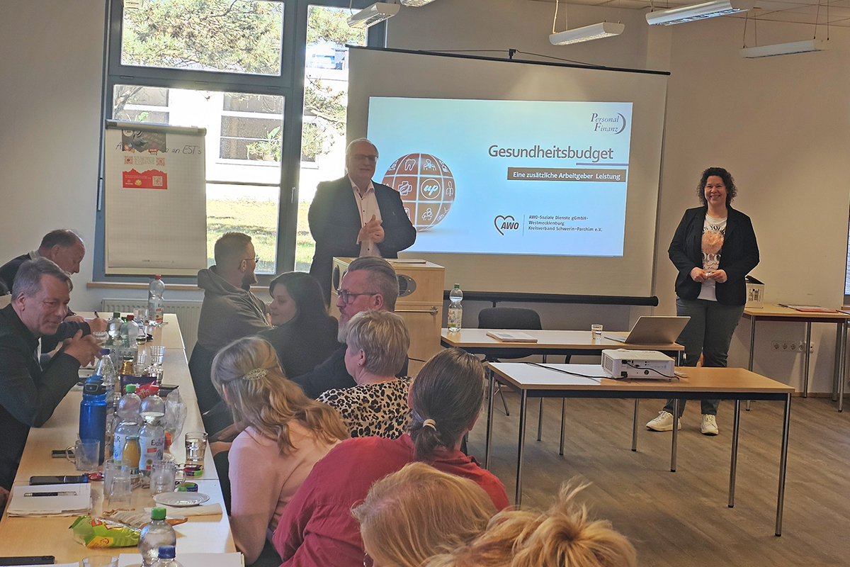 Beim heutigen Teamleiter-Tag im AWO SANO Ferienzentrum Schwerin stand ein besonders wichtiges und zukunftsweisendes Thema im Mittelpunkt: die Neugestaltung der Gesundheitsleistungen im Unternehmen für uns als Mitarbeitende. In angenehmer Atmosphäre wurde uns ein innovatives Konzept nähergebracht, das die Gesundheitsleistungen innerhalb unseres Unternehmens deutlich erweitert. Als Referentin führte uns Anke Wendt von der Firma Personalfinanz durch das Thema – und das auf eine Weise, die durchweg überzeugte: locker, sympathisch und gleichzeitig kompakt sowie verständlich.