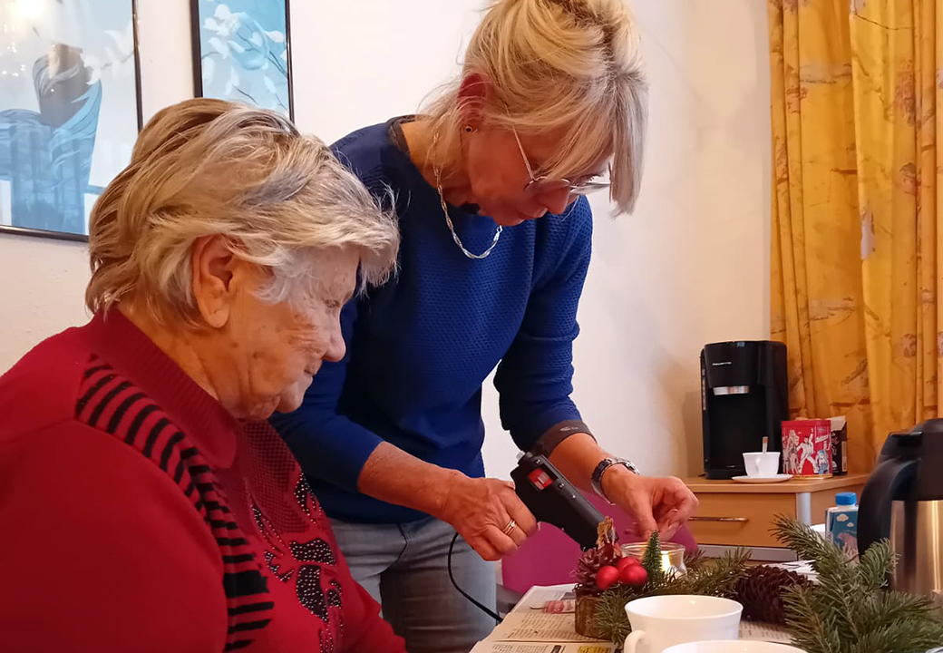 Senioren basteln Weihnachtsgestecke