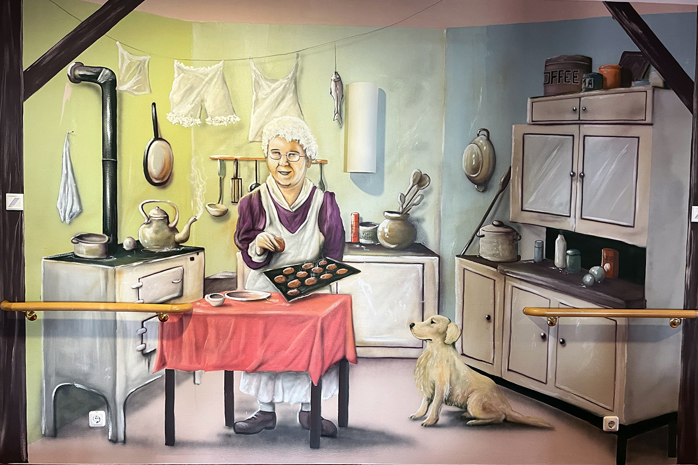 Große Freude im Seniorenhof Am Buchholz. Der Airbrusher unseres Vertrauens Kai Ahrendt hat nun den Wohnbereich Sommer mit einem tollen Werk verschönert. Unseren Bewohnern gefällt es mega …. und wir sagen DANKE. Wir haben schon eine Bushaltestelle und einen Bauernhof. Nun freuen wir uns über eine Küche aus Omas Zeiten!