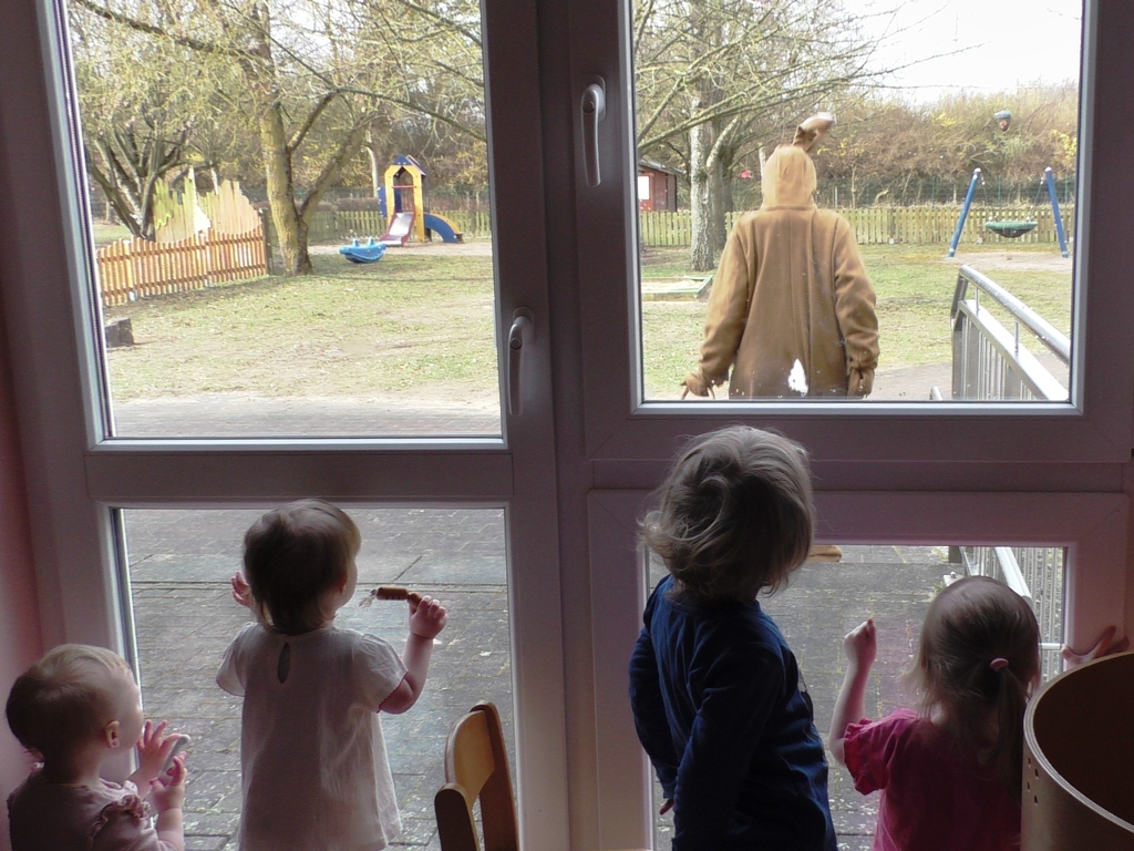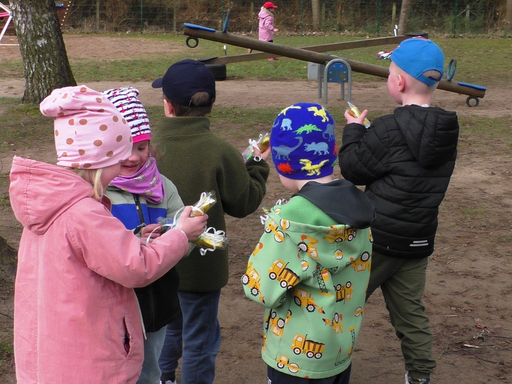 Letzte Woche haben wir gemeinsam unser fröhliches Osterfest in der Kita gestartet – und das mit einem leckeren Frühstück für alle Kinder. Gut gestärkt ging es anschließend nach draußen: Auf unserem Hof warteten viele bunte Ostereier darauf, entdeckt zu werden. Der Osterhase Emja und das Küken Alla hatten sie mit viel Freude für die Kinder versteckt.