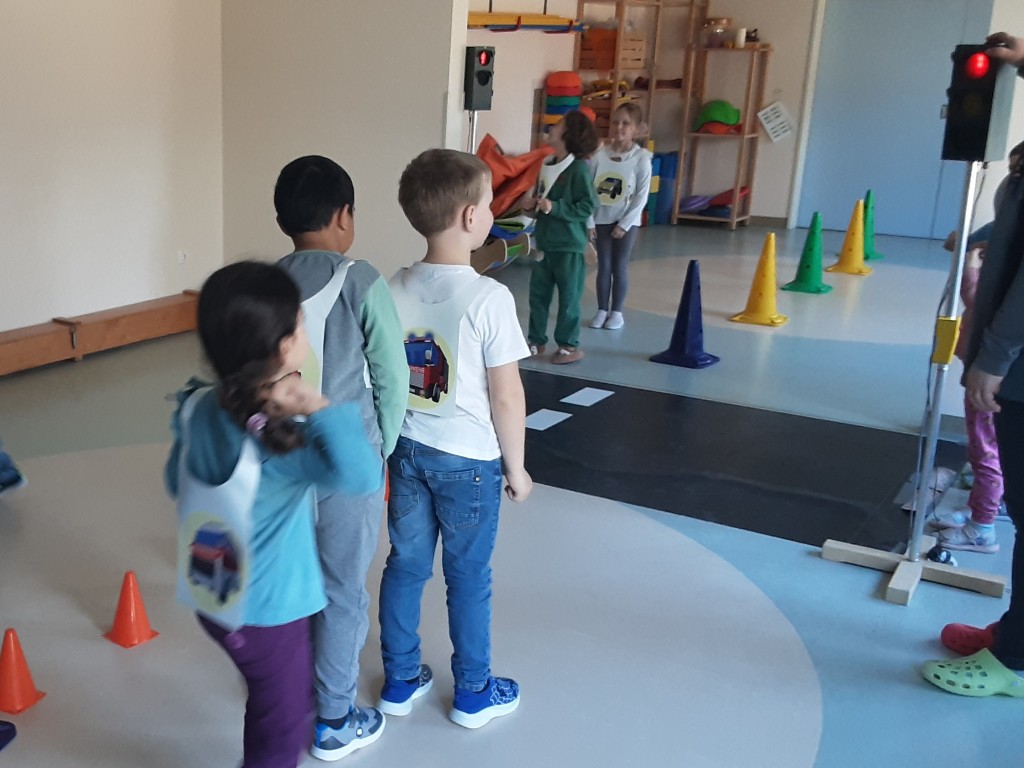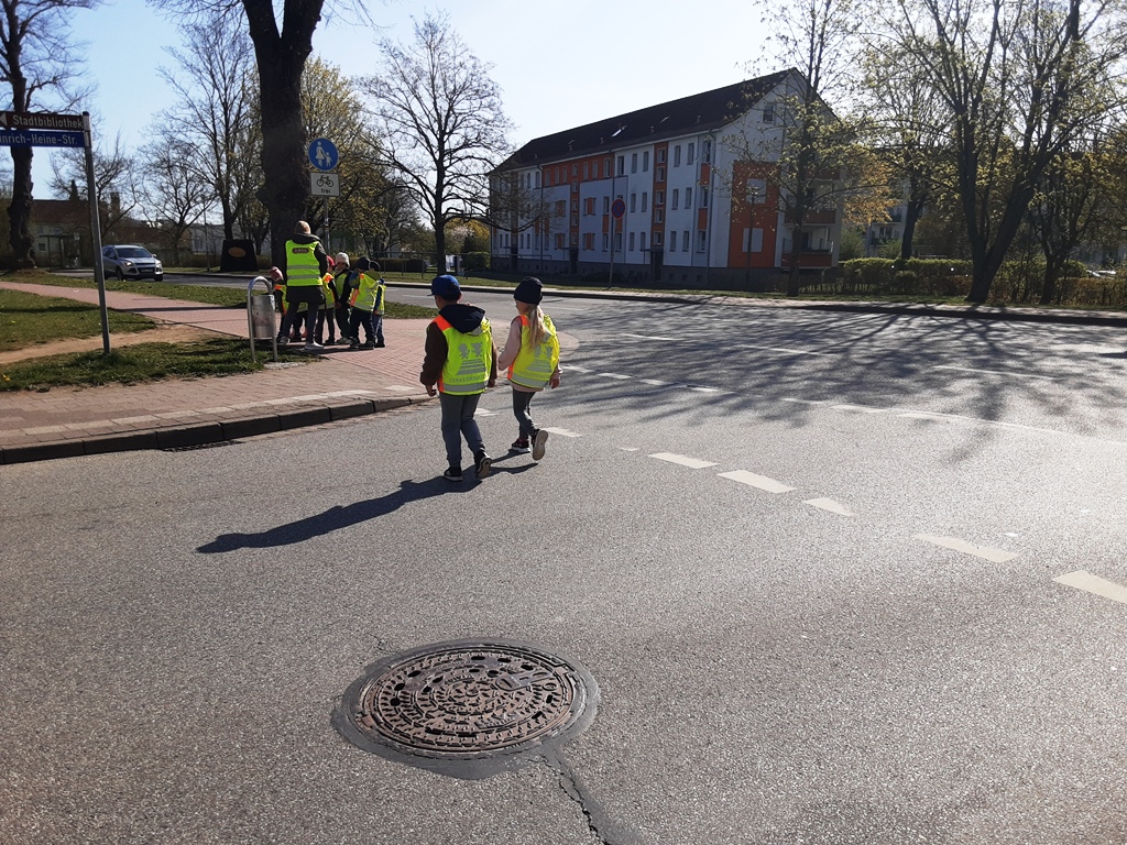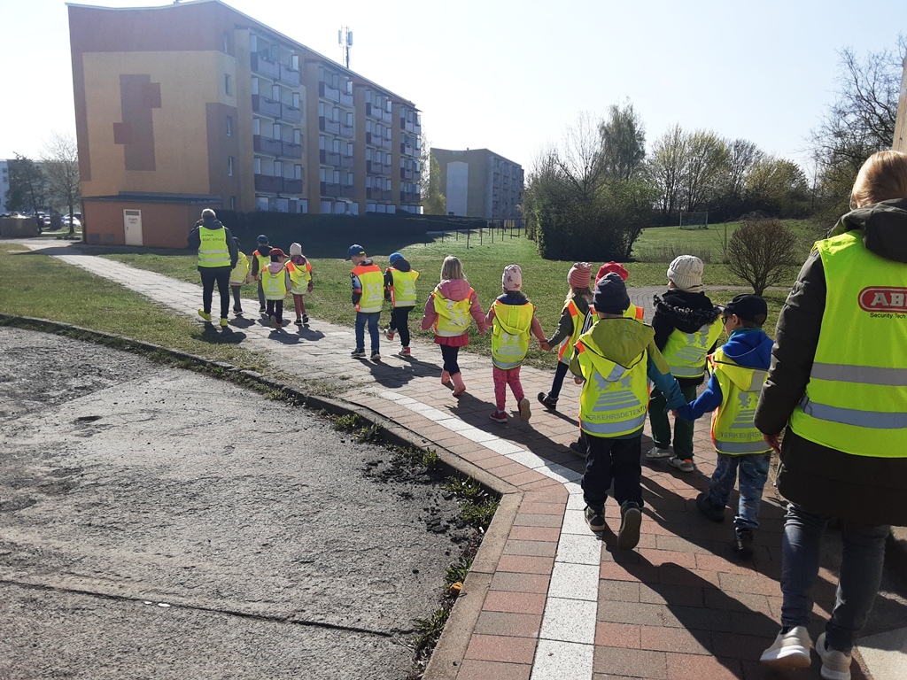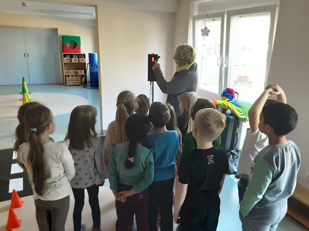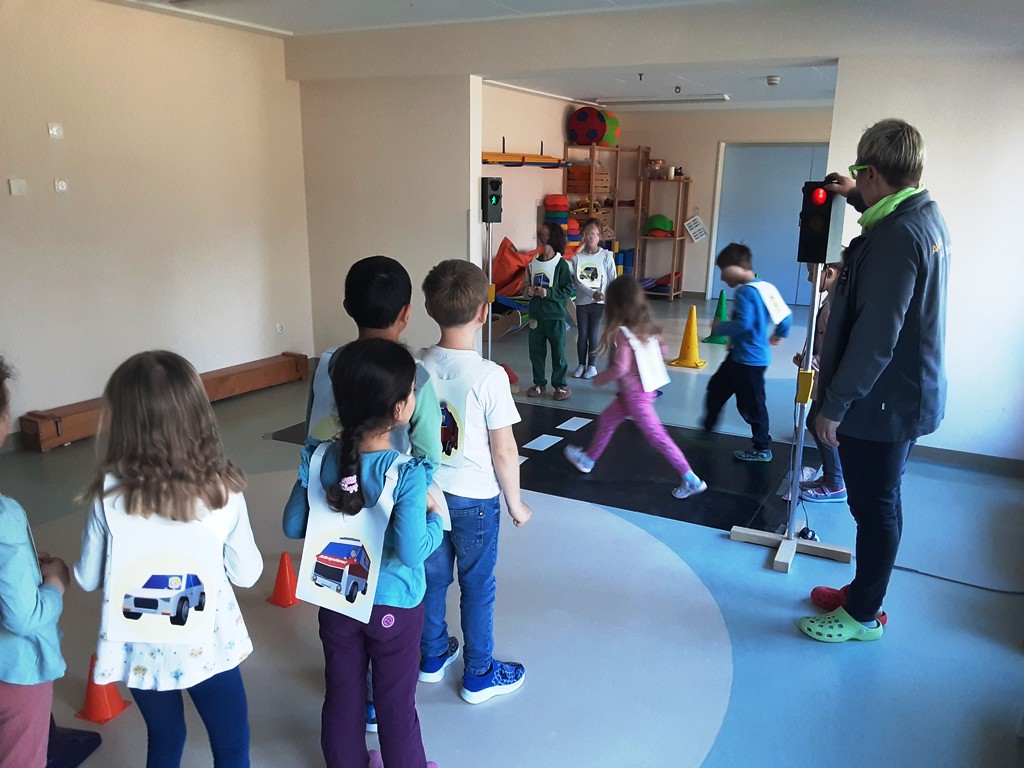 Letzte Woche haben unsere zukünftigen Erstklässler an einem Verkehrssicherheitsprogramm vom ADAC teilgenommen. Wie verhalte ich mich im Straßenverkehr als Fußgänger, überqueren einer Ampel oder Zebrastreifen. Warum hat die Ampel 3 Farben, was bedeuten sie, was mache ich, wenn die Ampel kaputt ist oder auch wenn die Ampel grün ist können unaufmerksame Fahrer das übersehen. Spielerisch schlüpfen die jungen Verkehrsteilnehmer in die Rolle eines Fußgängers, Autos oder Motorrads und erleben so interaktiv das Miteinander der jeweiligen Verkehrsteilnehmergruppen. Die schlaue Raben- Handpuppe „ADACUS“ kommentiert hierbei die Aktionen der Kinder. Erlebnisse und Erfahrungen der Kinder wurden mit aufgegriffen und besprochen. Nach dem alles spielerisch erfasst und besprochen wurde, sind die Kinder losgegangen und haben ihr erlerntes Wissen im Gadebuscher Straßenverkehr umgesetzt.