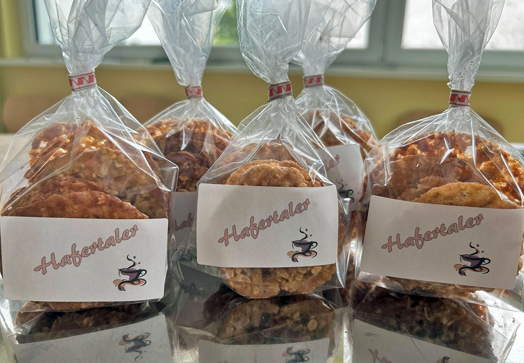 Im Eltern-Kind-Zentrum wird ehrenamtliches Engagement GROSS geschrieben. Gestern haben wir mit Julia in der Kochschule leckere Hafertaler für unsere neue Vitrine in der Lobby gebacken. Die Vitrine ist gefüllt mit selbstgemachten Produkten unseres Ehrenamtes, die gegen eine kleine Spende dort erhältlich sind. Diese Spenden kommen dann wieder zu 100% dem Ehrenamt zugute.