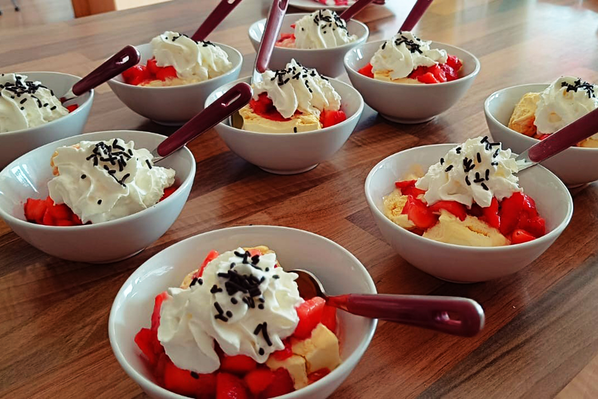 In unserer Tagespflege Am Dreescher Markt stand eine Woche ganz im Zeichen der Erdbeere. Unter dem Motto „Alles rund um die Erdbeere“ haben wir gemeinsam mit unseren Tagesgästen eine abwechslungsreiche und sinnliche Woche gestaltet. Die Erdbeerwoche bot für alle Sinne etwas: Von kulinarischen Köstlichkeiten über kreative Bastelaktionen bis hin zu einem unterhaltsamen Erdbeer-Quiz war alles dabei. Mit viel Freude und Engagement wurde dekoriert, gebastelt und sogar gemeinsam Erdbeermarmelade gekocht.