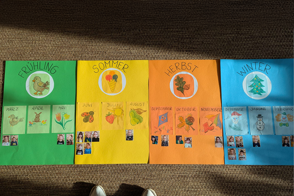 Unsere Kindergartenkinder aus dem Abenteuerland haben ein aufregendes neues Projekt gestartet: Mutter Natur entdecken! Mit viel Freude und Neugier tauchen sie in die Welt der Elemente ein: Feuer, Wasser, Erde und Luft. Die kleinen Naturforscher lernen spielerisch, wie diese Elemente mit den Jahreszeiten verbunden sind. Im Frühling sprießen die Blumen, im Sommer wärmt die Sonne, der Herbst bringt bunte Blätter und im Winter funkelt der Schnee. Mit spannenden Experimenten erforschen die Kinder, was die Natur alles zu bieten hat. Außerdem entdecken sie, wer in welcher Jahreszeit Geburtstag hat!