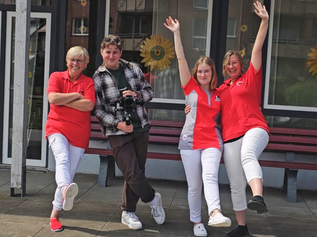 Es wurde gelacht, improvisiert und manchmal auch der ein oder andere Text vergessen – aber genau das machte die Tage so besonders und authentisch. Zwischen den Drehpausen wurde wild spekuliert, was als Nächstes passiert und ob wir vielleicht noch das ein oder andere Kunststück vollbringen sollten. Wir haben uns darauf geeinigt, dass unser Bereichsleiter HzE/HzL Steffen den Job übernimmt – auch das hat er drauf!