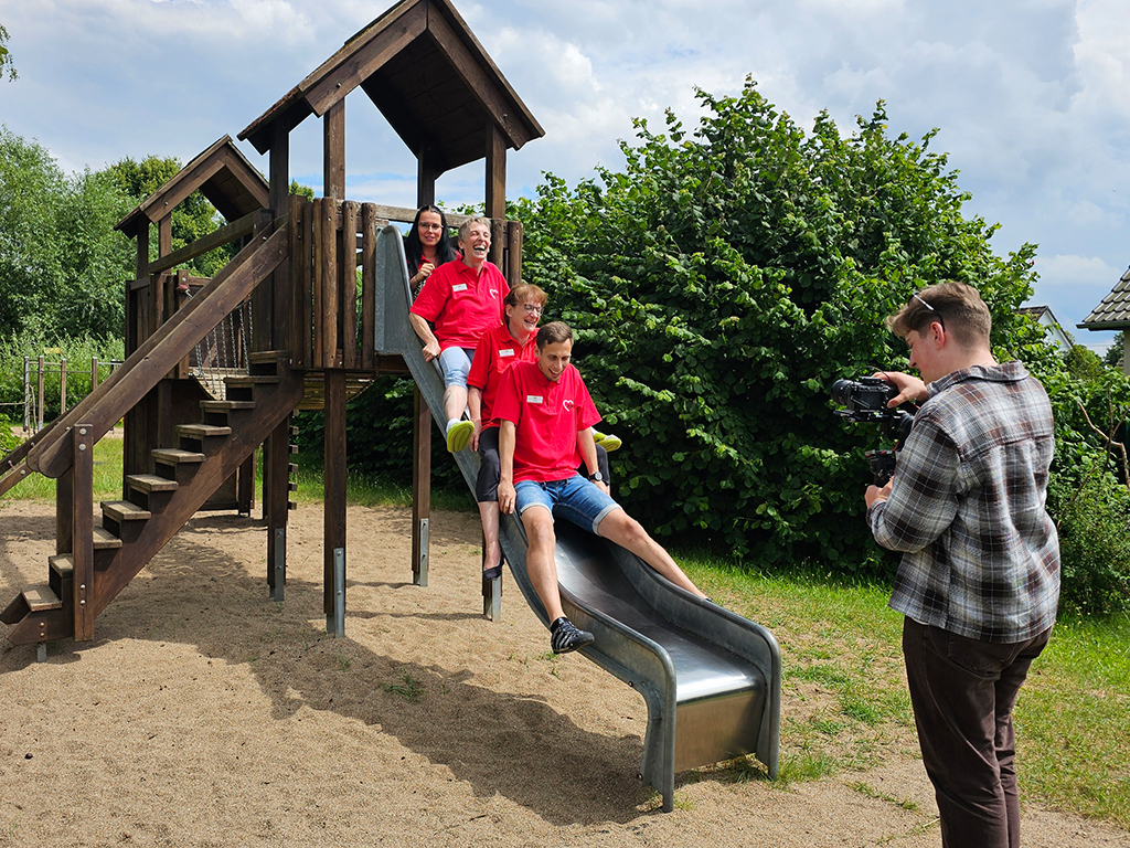 In der letzten Woche verwandelten sich einige unserer Einrichtungen in regelrechte Filmset. Zwei dynamische, kreative Köpfe von der Werbeagentur GEORG RECRUITING haben 3 verschiedene Einrichtungen besucht, um Werbeclips über unsere Arbeit, unseren Arbeitgeber und das, was uns täglich antreibt, zu drehen. Und was sollen wir sagen? Diese Jungs haben uns umgehauen! Ihre Fähigkeit, auf uns einzugehen, war bemerkenswert, und schon nach den ersten Minuten fühlten sich alle wohl in ihrer Haut. Drei Kolleginnen aus dem Bereich Hilfen zur Erziehung/Hilfen zur Lebensbewältigung haben sogar ihren Urlaub unterbrochen, um aktiv dabei zu sein – ein beeindruckendes Beispiel für Engagement.