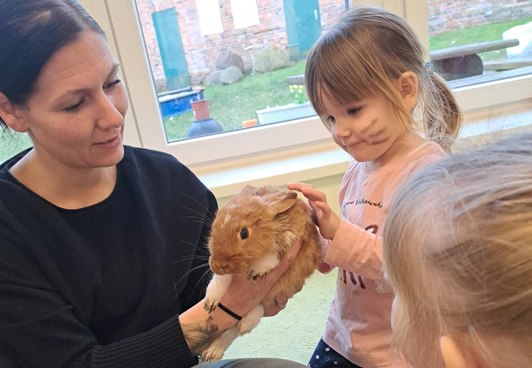 Das diesjährige Osterfest in der Kita Abenteuerland war ein wahrer Höhepunkt für Kinder. Der Tag begann für alle Kinder mit einem gemeinsamen Osterfrühstück. Neben den üblichen Attraktionen und Aktivitäten gab es eine besondere Überraschung: einen Streichelzoo mit echten kleinen Osterhasen! Die Kinder konnten ihr Glück kaum fassen, als sie die niedlichen Hasen entdeckten. Mit strahlenden Augen gingen sie auf die flauschigen kleinen Tiere zu, um sie vorsichtig zu streicheln und zu umarmen. Einige der Hasen schienen die Aufmerksamkeit zu genießen und hüpften fröhlich umher, während die Kinder sich an ihrer Gesellschaft erfreuten. Die süßen Tiere brachten eine besondere Magie in die Feierlichkeiten und hinterließen bei den Kindern und auch den Erziehern unvergessliche Erinnerungen an ein zauberhaftes Osterfest. Vielen Dank lieber Andreas für die kuschelige Überraschung.