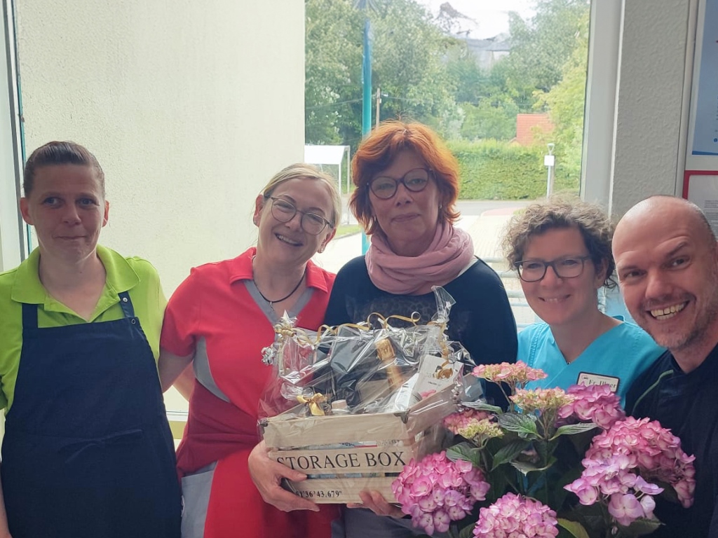 Im Seniorenhaus Schelfwerder haben wir kürzlich unsere liebe Kollegin Marianne verabschiedet. Sie hat seit über 22 Jahren mit Herz und Hingabe in unserer Küche im Seniorenhaus gearbeitet.  Nun geht sie in den wohlverdienten Ruhestand. Es war ein tränenreicher Abschied, aber wir sind dankbar für all die wunderbaren Jahre mit dir, Mariana.