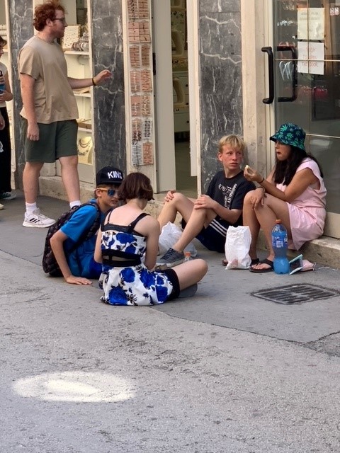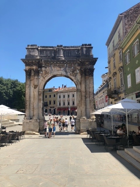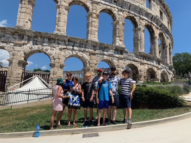 Der fünfte Tag unserer Ferienfahrt bedeutete Kulturprogramm: es ging zu der im Süden Istriens gelegenen Stadt Pula, in welcher wir sowohl das dortige Amphitheater besuchten, als auch durch die vielen kleinen, mediterranen Gassen schlenderten. Danach ging es zur wohlverdienten Abkühlung wieder in das Meer bzw. den Pool. Das heutige Abendbrot bestand außerdem aus einer kleinen Ferienfahrt-Tradition, Nudeln mit Tomatensoße a lá Herr Cwielong.