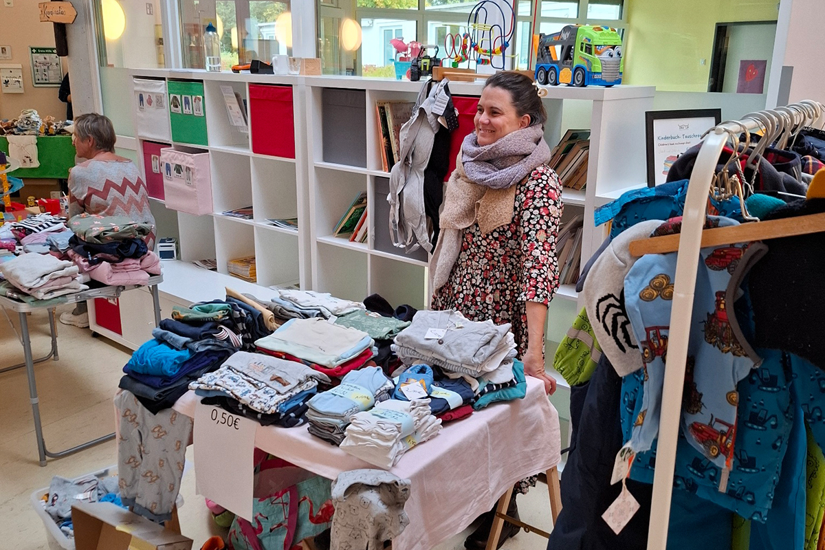 In dieser Woche fand ein kleiner, aber sehr feiner Flohmarkt im Foyer des ElKiZ und der Kita Igelkinder statt. In familiärer und entspannter Atmosphäre wurde nach Herzenslust gestöbert, gefeilscht und natürlich auch geschlemmt. Viele Familien nutzten die Gelegenheit, nicht mehr benötigte Schätze weiterzugeben oder neue Lieblingsstücke zu entdecken. Ein besonderer Dank gilt dem Elternrat der Kita, der mit viel Engagement und Einsatz diesen Flohmarkt möglich gemacht hat. Durch die gute Organisation und Unterstützung im Hintergrund konnten alle Besucherinnen und Besucher einen rundum gelungenen Nachmittag genießen.