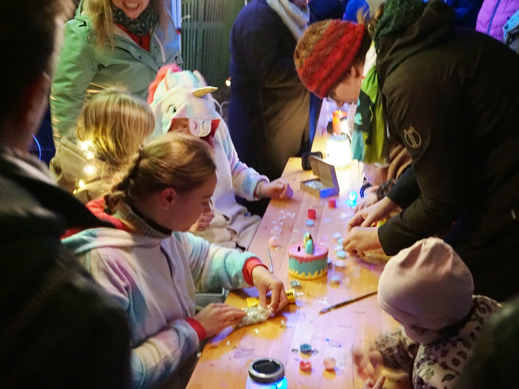 Unser Lichterfest ließ wieder viele Kinderaugen leuchten und sorgte für strahlende Gesichter. An zahlreichen Stationen konnten die Kinder kreativ werden: Beim Kinderschminken, an den Lichtkästen mit Sandmalerei, beim Gestalten mit Lichtbausteinen oder beim beliebten Lichterbowling. Auch Bastelstände für Masken und funkelnde Leuchtkugeln sorgten für Begeisterung. Ein besonderes Highlight in diesem Jahr war die beeindruckende Lasershow, die Groß und Klein in Staunen versetzte. Für das leibliche Wohl war ebenfalls bestens gesorgt: Es gab Bratwurst vom Grill, Stockbrot über der Feuerschale, frische Brezeln, Kinderpunsch – und natürlich ganz viel gute Laune. Ein besonderer Dank geht auch an die Feuerwache Schwerin Mitte. Ihr habt uns wieder mit eurer Feuerwehr und den tollen Wasserspielen großartig unterstützt.