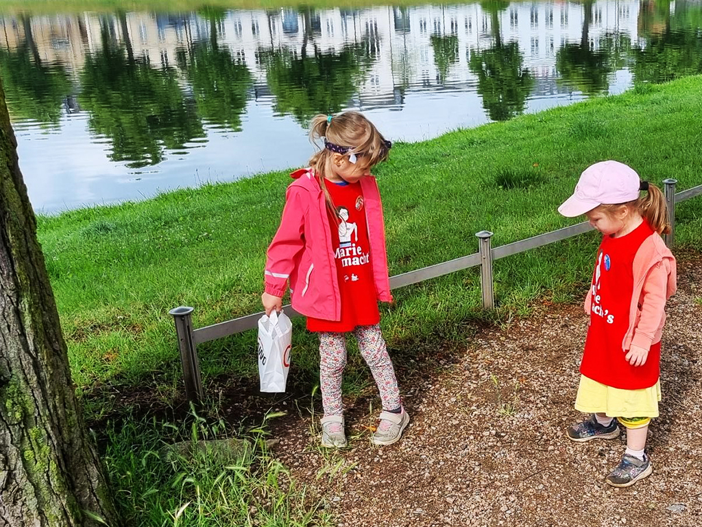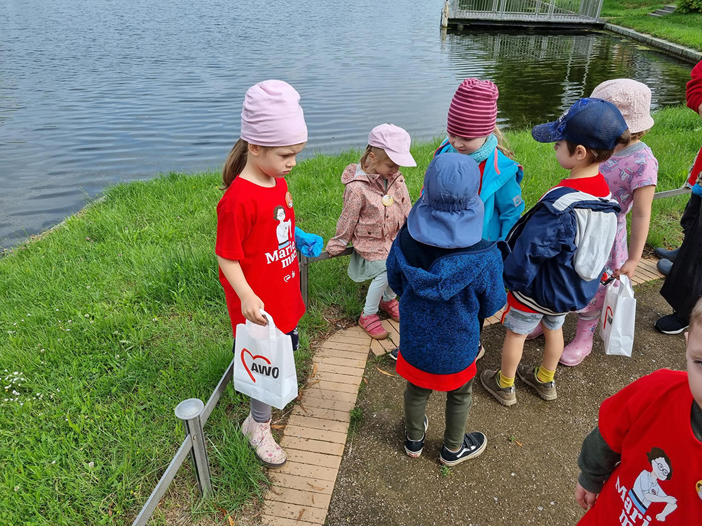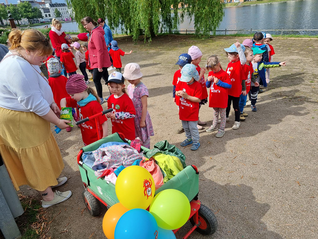 Kreative Ideen für Gemeinschaft und Zusammenhalt und positive Botschaften. Unsere Kita Leuchtturm hat sich an diesem Projekt beteiligt und rund um den Pfaffenteich Müll gesammelt. Für die Passanten hatten die Kinder sogar noch kleine Geschenke. Die haben sich sehr über die Aufmerksamkeit gefreut. „Oh, das ist aber lieb“, sagte eine ältere Dame. „Das ist das Schönste, was mir heute passiert ist“. Die Kinder strahlten richtig, als sie merkten, wie viel Freude sie den Menschen damit bereiteten und natürlich haben sie ganz nebenbei auch jede Menge Müll eingesammelt. Es sind halt oft die kleinen Dinge, die eine große Wirkung entfalten können.