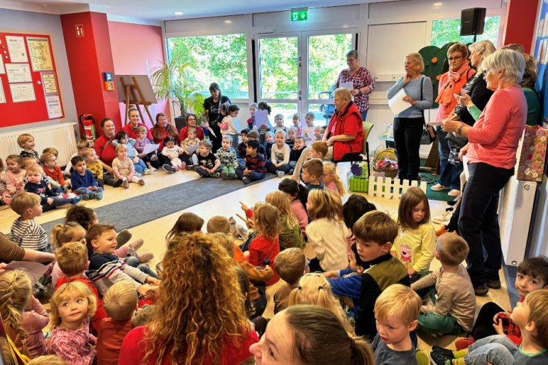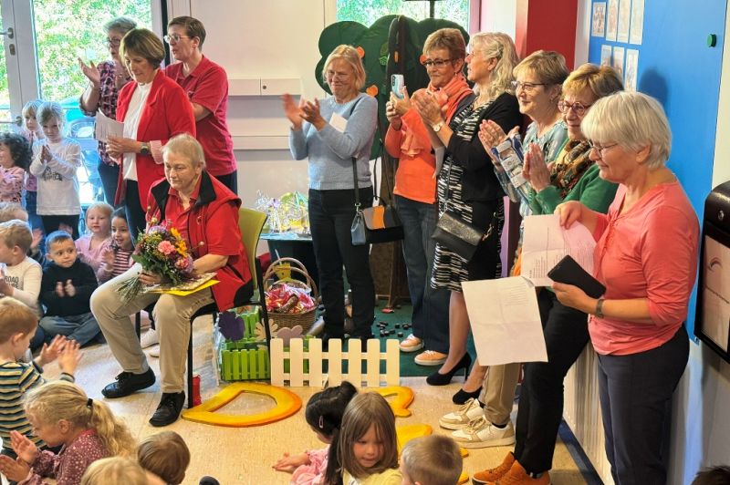 Ende September haben wir unsere Kolleginnen Gabi nach unglaublichen 51 Jahren in der AWO Kita Regenbogen verabschiedet – gemeinsam mit allen Kindern, Kolleg:innen, Küchenkräften, Hausmeistern und sogar einigen ehemaligen Mitarbeitenden. Im selben Jahr, als Nina Hagen sang: „Du hast den Farbfilm vergessen…“, begann Gabi ihre Reise bei uns. Zum Glück hat sie den Farbfilm nie vergessen – im Gegenteil: Sie hat über fünf Jahrzehnte lang Farbe, Freude und ganz viel Herz in unseren Kita-Alltag gebracht.