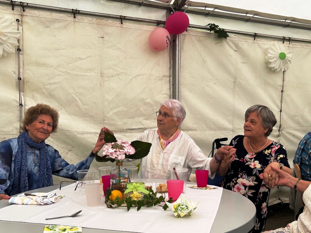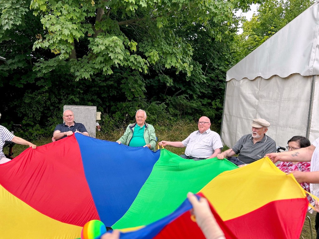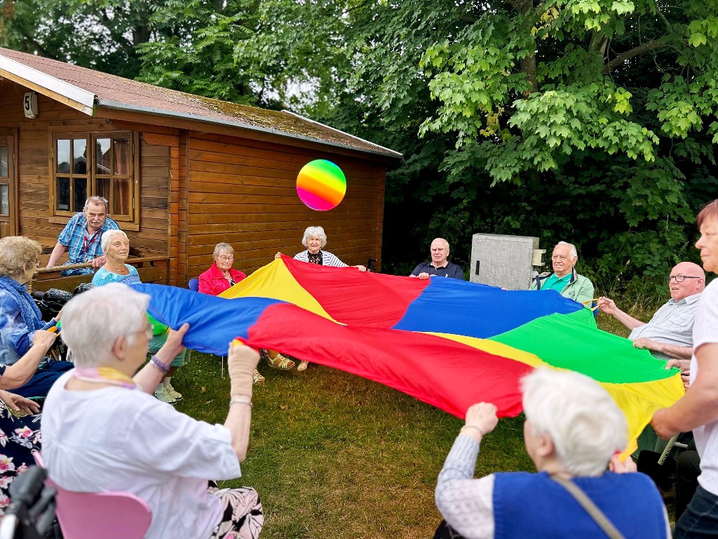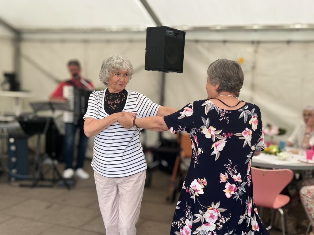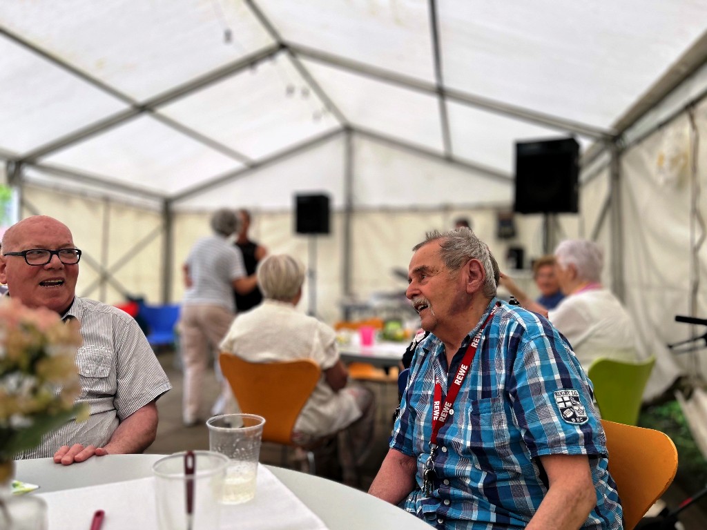 Was für ein wunderschöner Tag! Bei bester Stimmung wurde getanzt, geschunkelt, gelacht und natürlich lecker gegessen. Für jede Menge Bewegung und Spaß sorgten auch fröhliche Spiele mit dem Schwungtuch, bei denen alle mit Begeisterung dabei waren. Ein weiteres Highlight: die Polonaise durchs Festzelt, die niemanden auf dem Platz hielt! Ein herzliches Dankeschön an Peter Hahn, der mit Musik, Witz und Geschichten aus dem Leben für großartige Unterhaltung sorgte und unsere Tagesgäste zum Strahlen brachte.