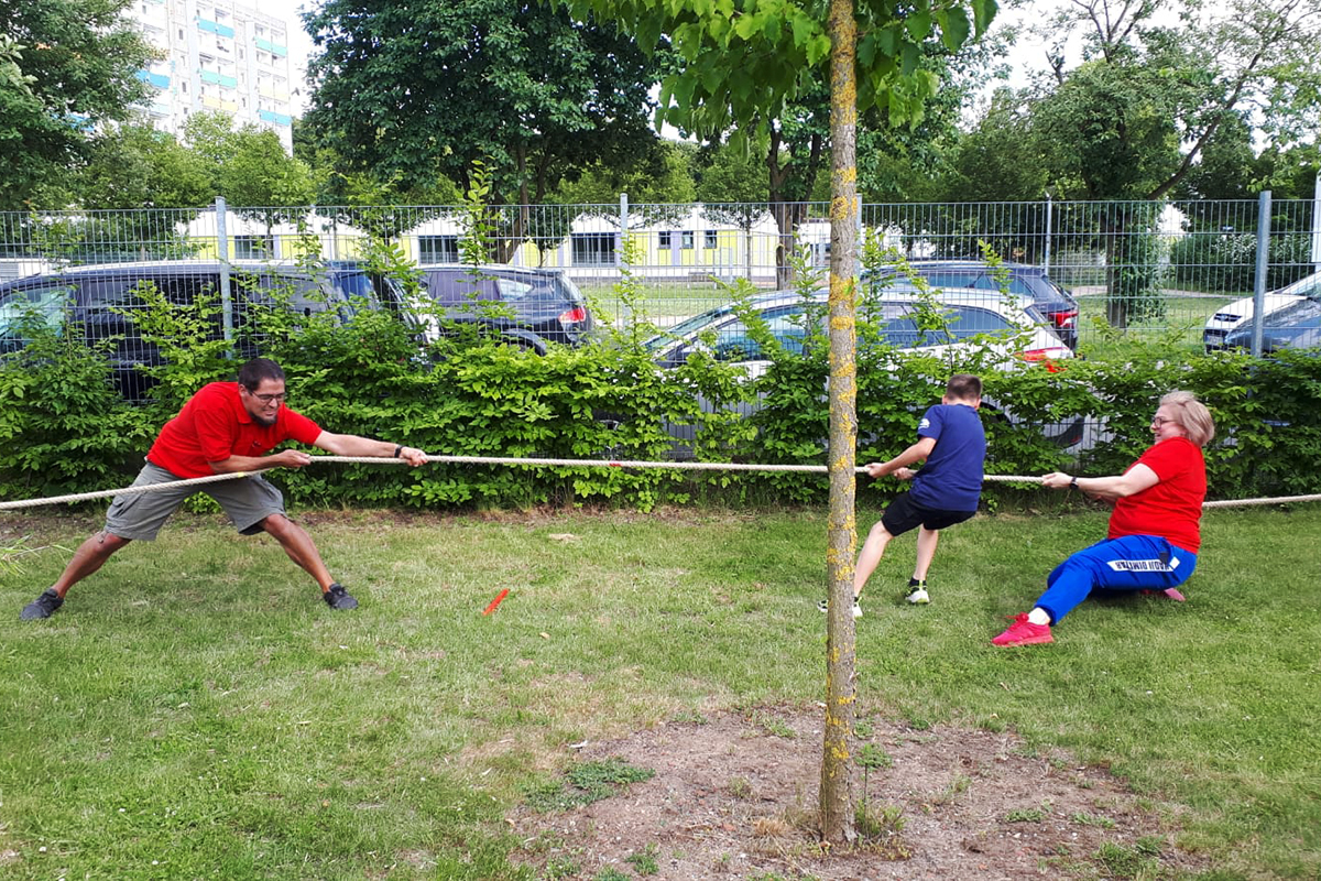 Außerdem gab es Kinderschminken, lustige sportliche Spiele, Dosenwerfen und jede Menge Gelegenheiten zum Toben und Lachen. Besonders das Tauziehen wurde zu einem echten Highlight – nicht nur für die Kinder, sondern auch für die Eltern, die mit vollem Körpereinsatz und jeder Menge Spaß dabei waren!