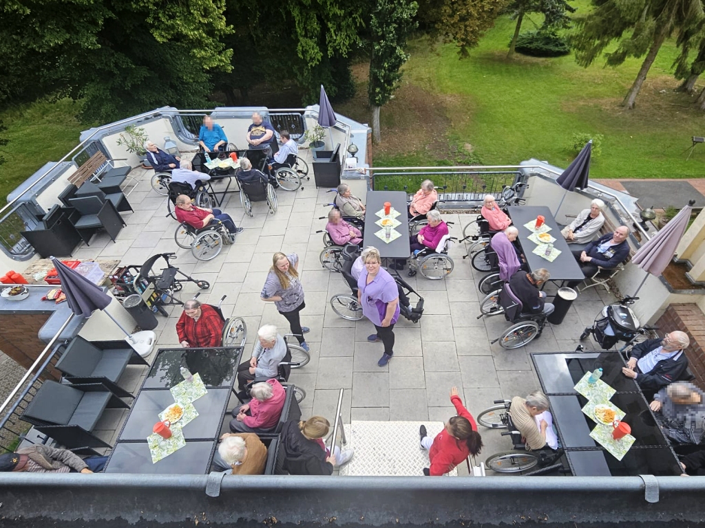 Im Seniorenhaus Klein Welzin ist es bereits eine schöne Tradition geworden, in den Sommermonaten gemeinsam zu grillen. So auch in der vergangenen Woche: Am Vormittag versammelten sich alle Bewohnerinnen und Bewohner sowie das gesamte Personal auf der Terrasse. Bei Bratwurst, Kartoffelsalat, kühlen Getränken und guten Gesprächen war die Stimmung großartig – auch wenn das Wetter eher „norddeutsch sommerlich“ war.