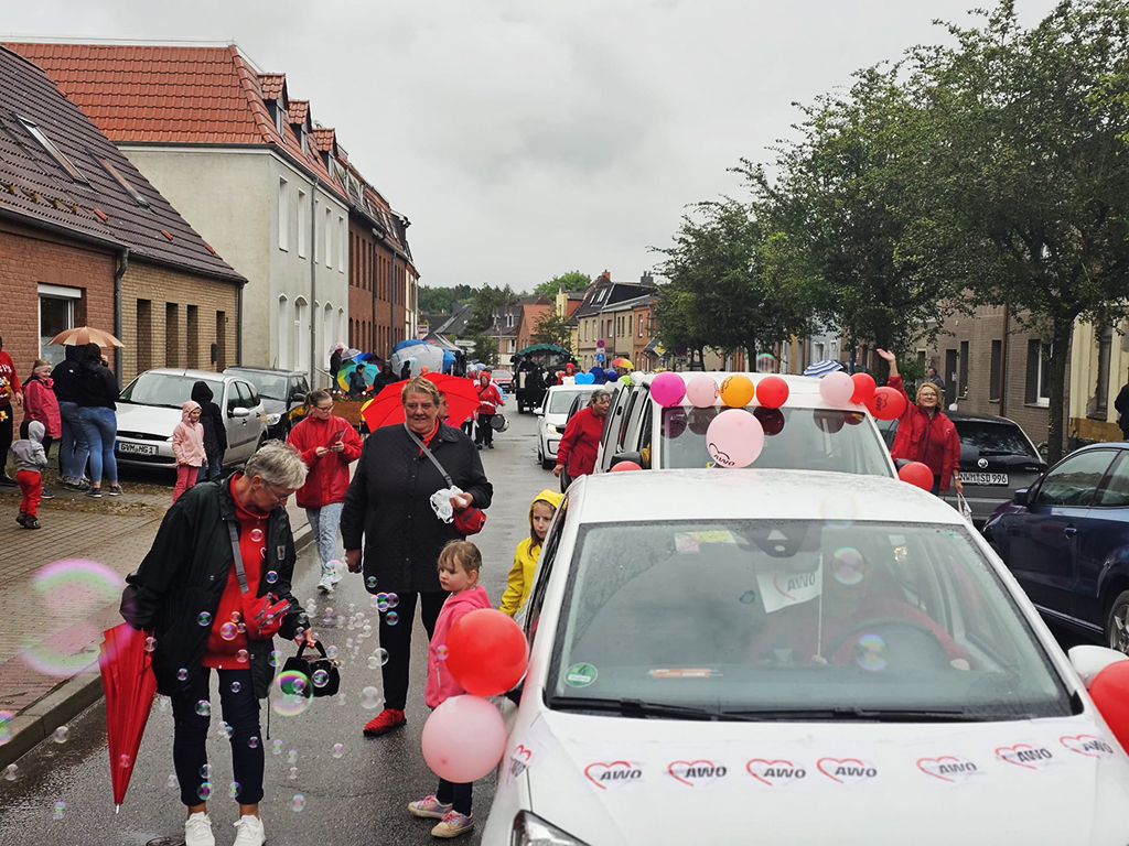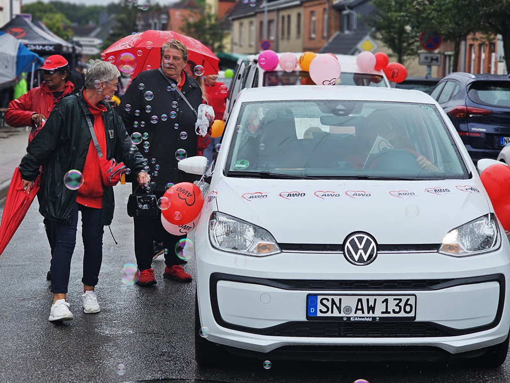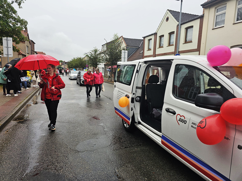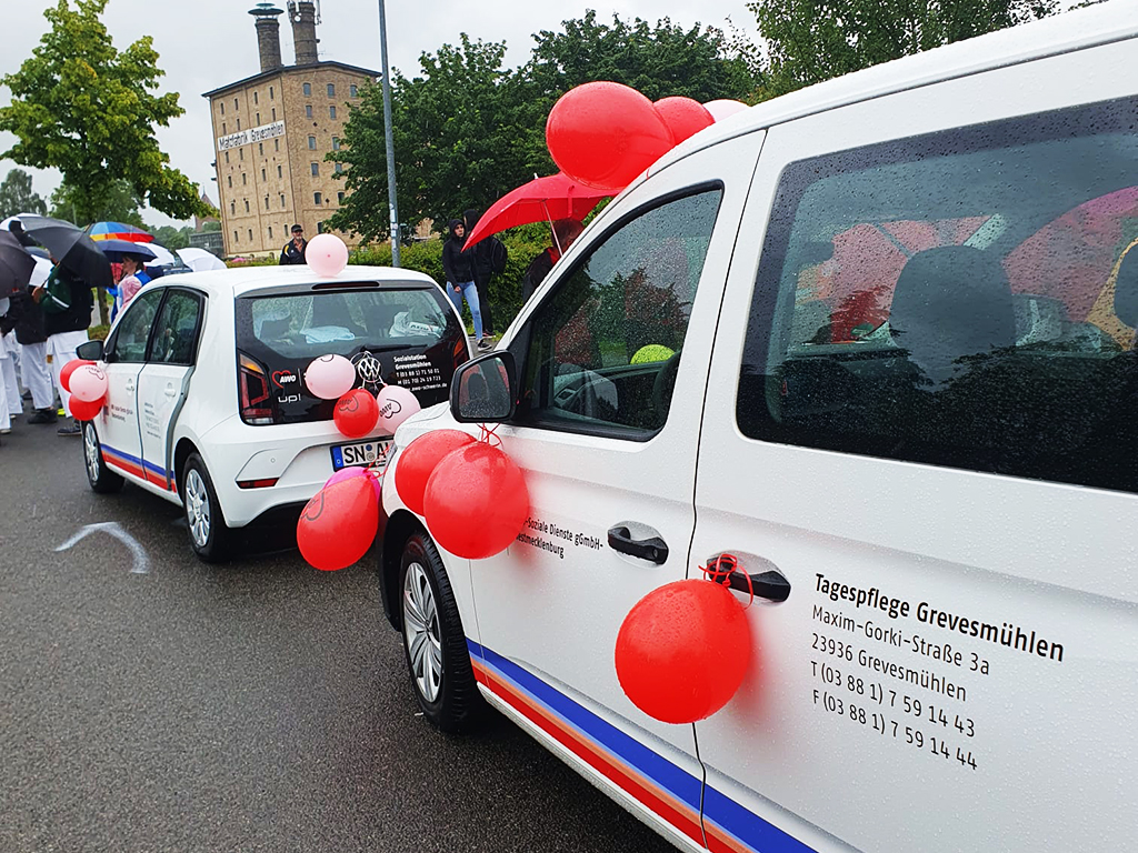Die Sozialstation und die Tagespflege haben sich auch in diesem Jahr zum Grevesmühlener Stadtfest verabredet. Mit Bonbons, Flyern und Seifenblasen haben es sich unsere Kollegen nicht nehmen lassen, die AWO beim Festumzug zu präsentieren – als Einrichtung für interessierte Kundinnen und Kunden, aber auch als Arbeitgeber! Das Wetter war in diesem Jahr bescheiden schön, aber die Stimmung im Zug umso fröhlicher.