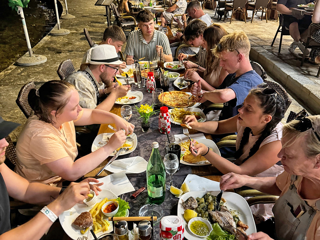 Am späten Nachmittag hieß es: Jetzt kommt die Überraschung Auf nach Novigrad! Von dort aus starteten wir unsere Delphinsafari. Mit großen Augen haben wir aufs Meer geschaut, und nach einer Weile – BÄM! – die schnellen Schwimmer gesichtet! Die Aufregung war so groß! Es war ein echtes Highlight für uns alle!