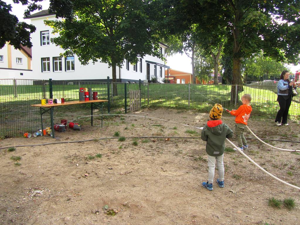 Ein aufregender Tag für alle kleinen Feuerwehrfans! Beim Feuerwehrfest in unserer AWO Kita Abenteuerland konnten die Kinder einen großen Feuerwehrwagen von innen erkunden und selbst aktiv werden: Mit echten Wasserschläuchen durften sie Dosen abwerfen und am großen Fußball Dart ihr Können zeigen. Für das leibliche Wohl war natürlich auch gesorgt – bei Janins und Connys Essecke gab es leckeren, selbstgebackenen Kuchen. Wir freuen uns über die große Beteiligung, die vielen Besucherinnen und Besucher sowie die fleißigen Kuchenbäckerinnen, Eltern und Kinder, die zu diesem schönen Fest beigetragen haben. Auch das Team hatte viel Spaß und einen wunderschönen Tag.