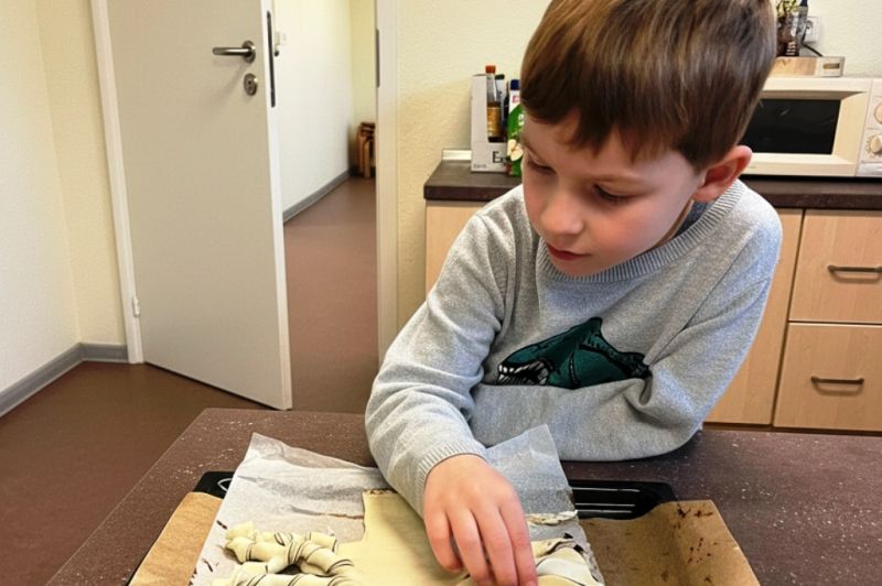 Die Gruppe Zauberflitzer hat mit viel Freude und Kreativität einen wunderschönen Winterbaum aus Blätterteig gebacken. Die Aufregung war groß, als sich endlich die Ofentür öffnete und der herrliche Duft durch den Raum zog. Stolz bestaunten die Kinder ihr gelungenes Backwerk – und natürlich wurde anschließend gemeinsam probiert.